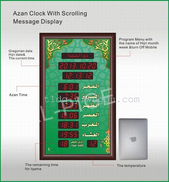 1、邦克钟是自动显示100年日历/伊斯兰日历,月份,星期,时间