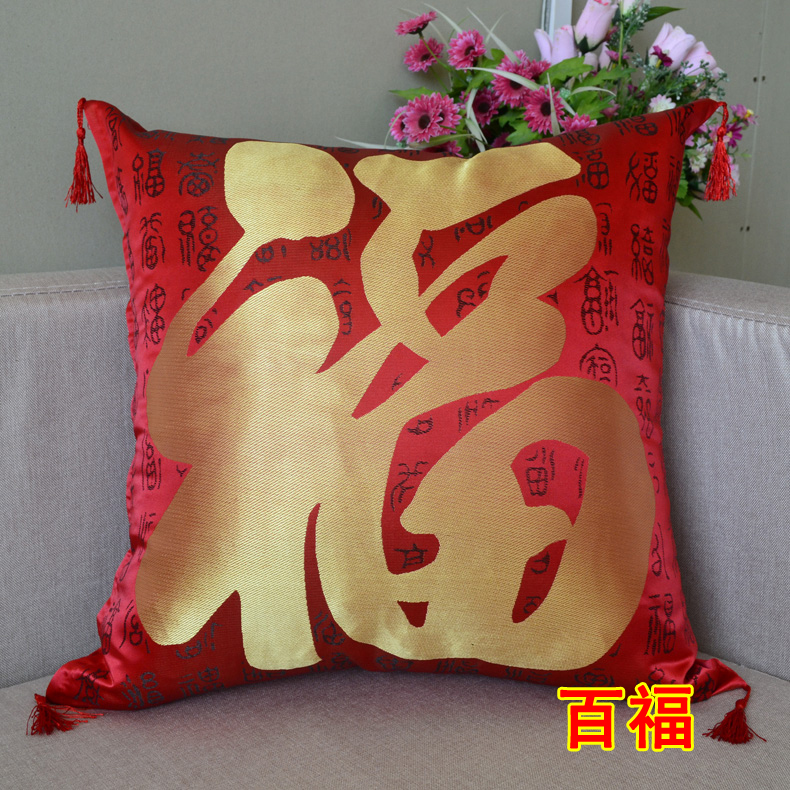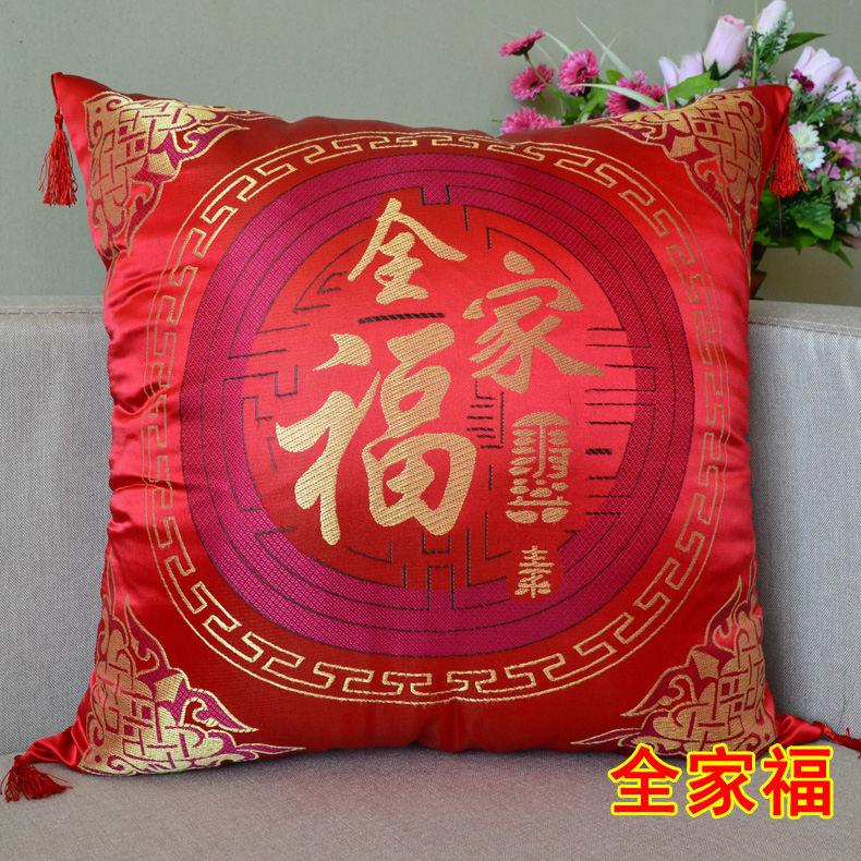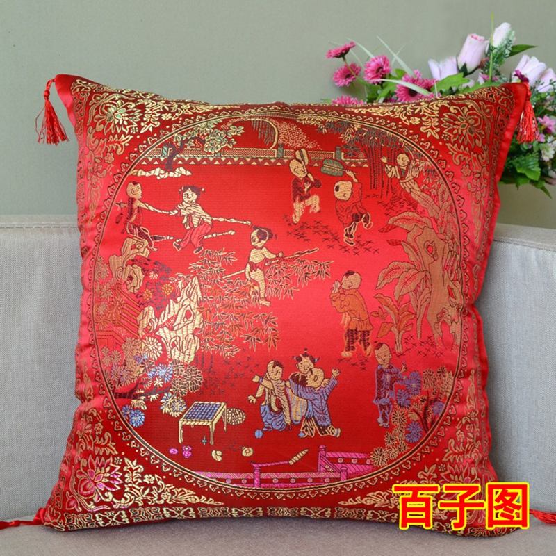 百子图全家福婚庆红色喜庆抱枕套靠垫靠枕,尺寸45*45