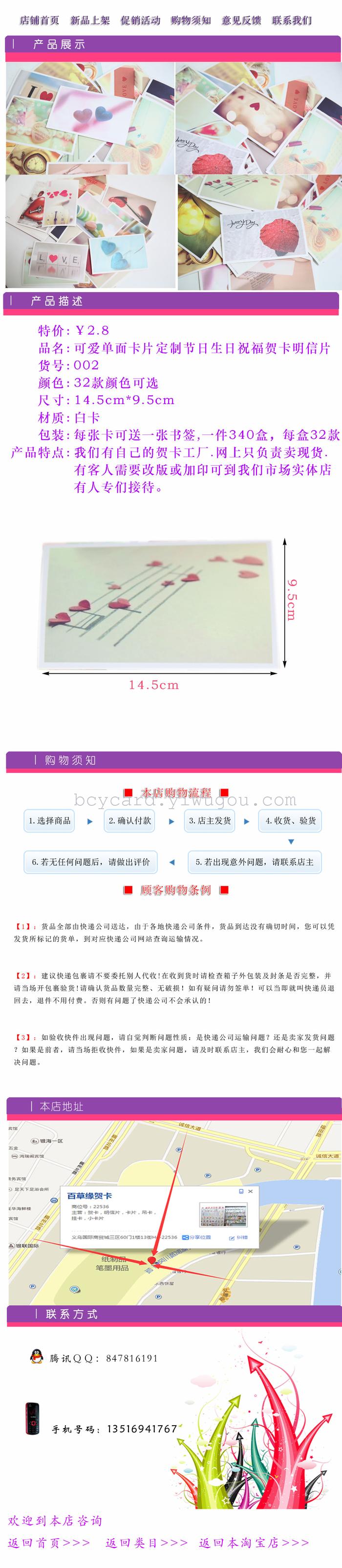 可爱单面卡片定制 节日生日祝福贺卡 明信片 投诉