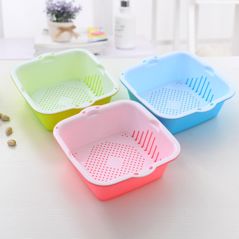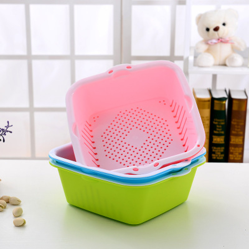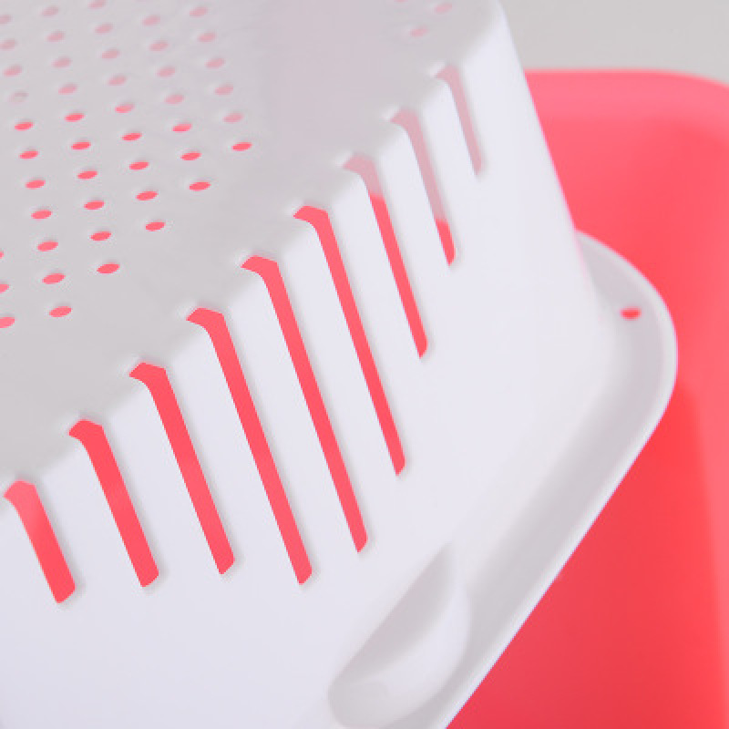 产品用途: 厨房收纳 多功能双层沥水筛,共有两层,有滴水功能, 滴水隔层布满小孔,可分开使用, 用于清洗蔬菜、水果或是存放餐具、食物和水果等。 也可用于洗菜或焯水后沥干水分,刚洗完的碗放上面也可以沥水。 下面的盆可以当普通的盆用,一举多得哦~