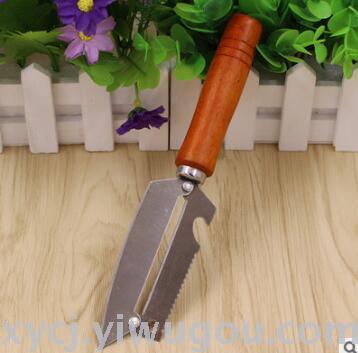 大号不锈钢木柄四用刨子 厨房多功能苹果削皮刀 水果削皮器 投诉