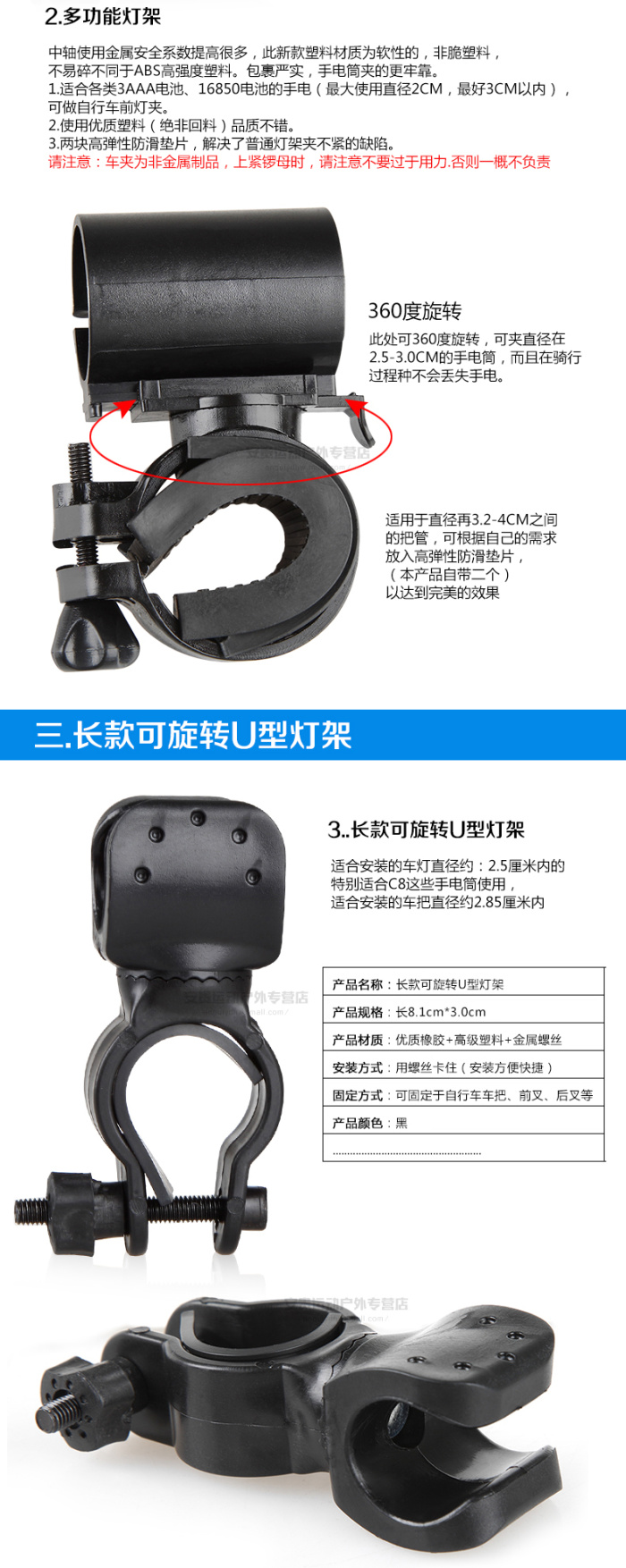 各类自行车夹,手电筒夹