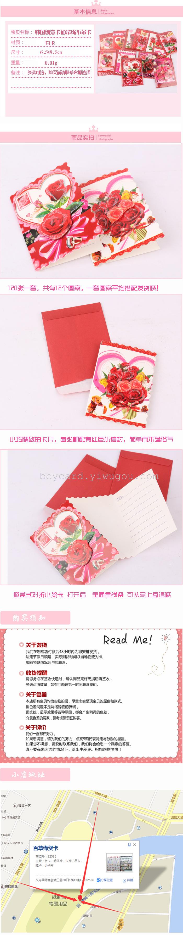 精品创意玫瑰花对折小卡 吊卡 挂卡 贺卡批发 投诉