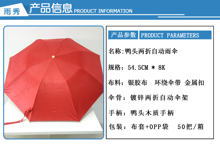 | 加印LOGO:可以 | 款式:二折 | 品牌:雨秀伞业 |