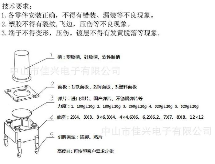• 主营;电子元件.玩具开关,拨动开关,轻触开关,船型开关,微型电机,电子连接线,导线,弹簧片,电池扣,电阻,电容,电感,电位器,二三极管,插座,电池盒,继电器,IC集成,贴片电阻,贴片电容,贴片二三极管