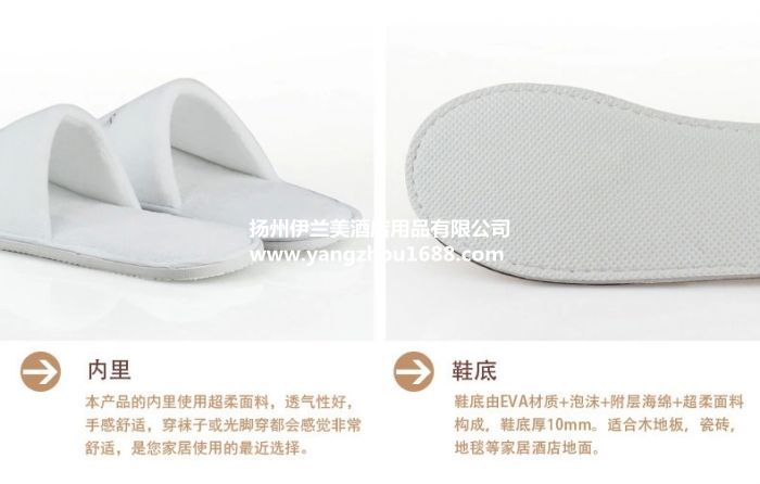 • 扬州伊兰美酒店用品有限公司,专业生产酒店一次性拖鞋,割绒拖鞋,毛巾拖鞋,密丝绒拖鞋,拉毛拖鞋等