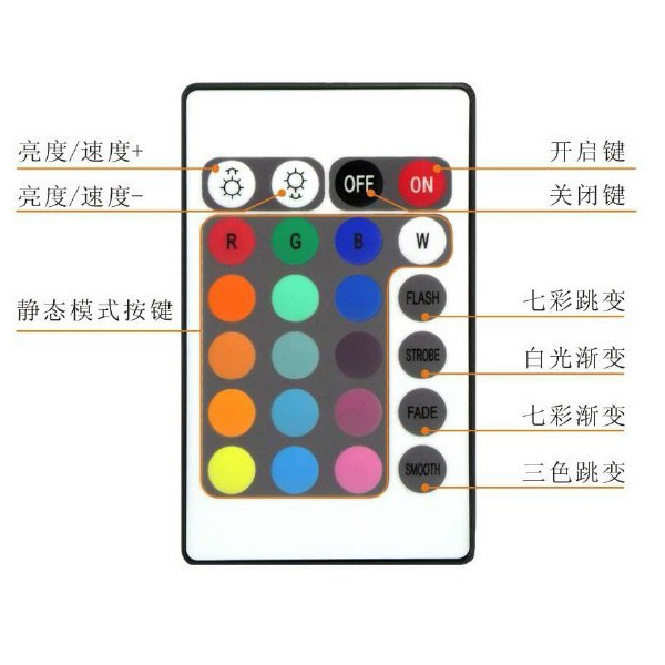 灯光颜色:有遥控器。可遥控16种色彩。可以固定一种颜色,也可以自动变化