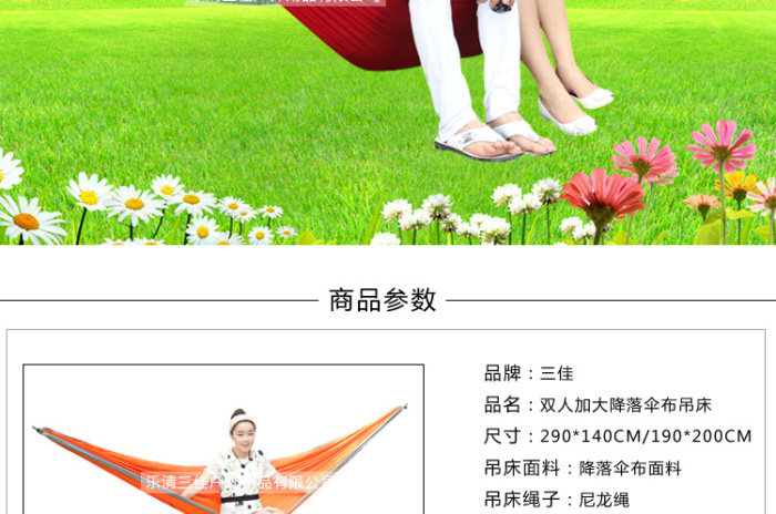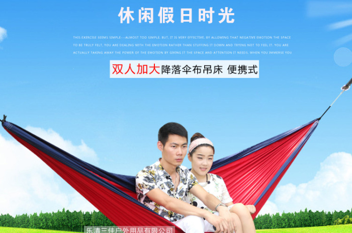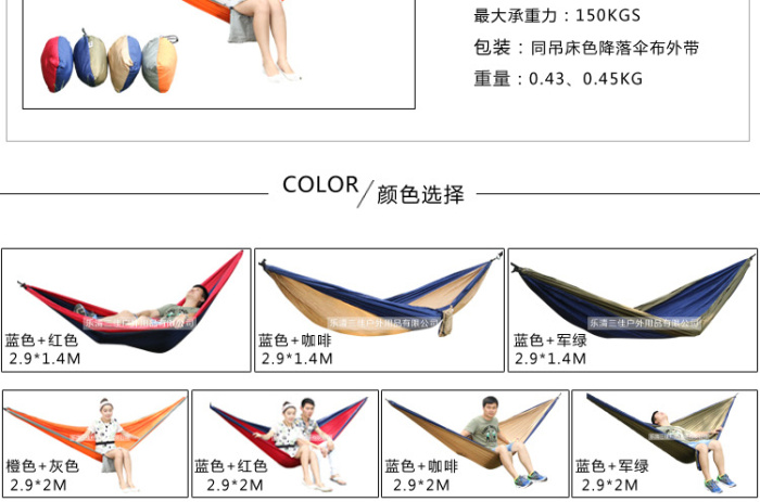 降落伞布吊床 户外双人休闲吊床带外袋轻巧便携 投诉