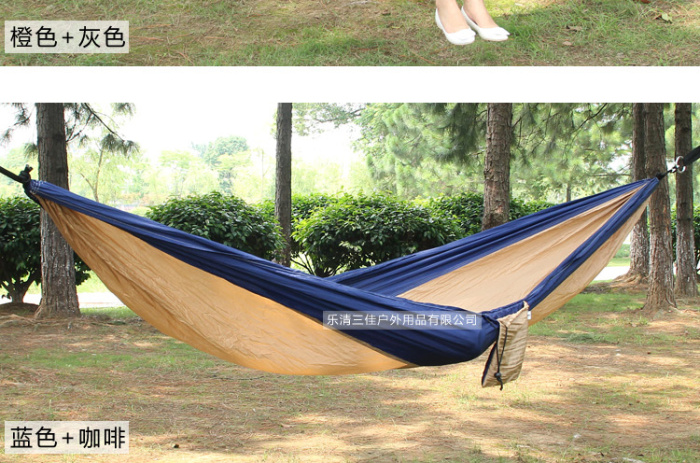降落伞布吊床 户外双人休闲吊床带外袋轻巧便携