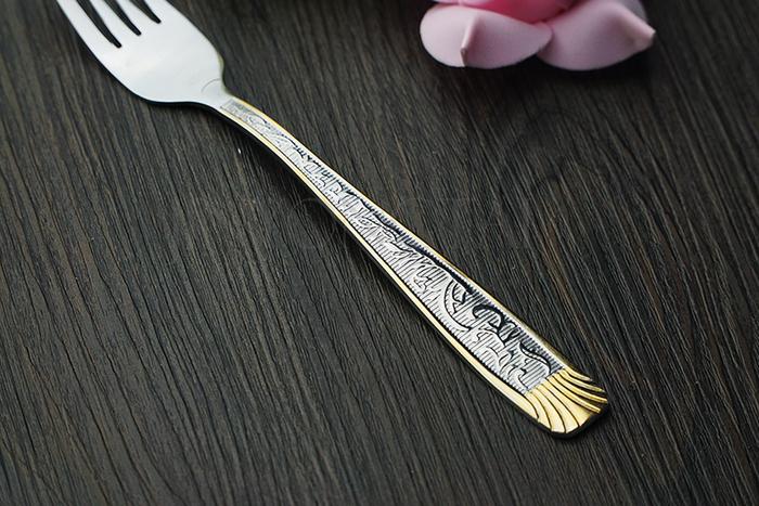 西式不锈钢餐具 古文花纹手柄 麻轮手抛 镀金高质量 刀叉勺 投诉