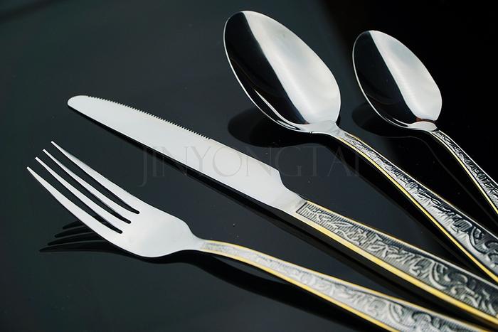 西式不锈钢餐具 古文花纹手柄 麻轮手抛 镀金高质量 刀叉勺