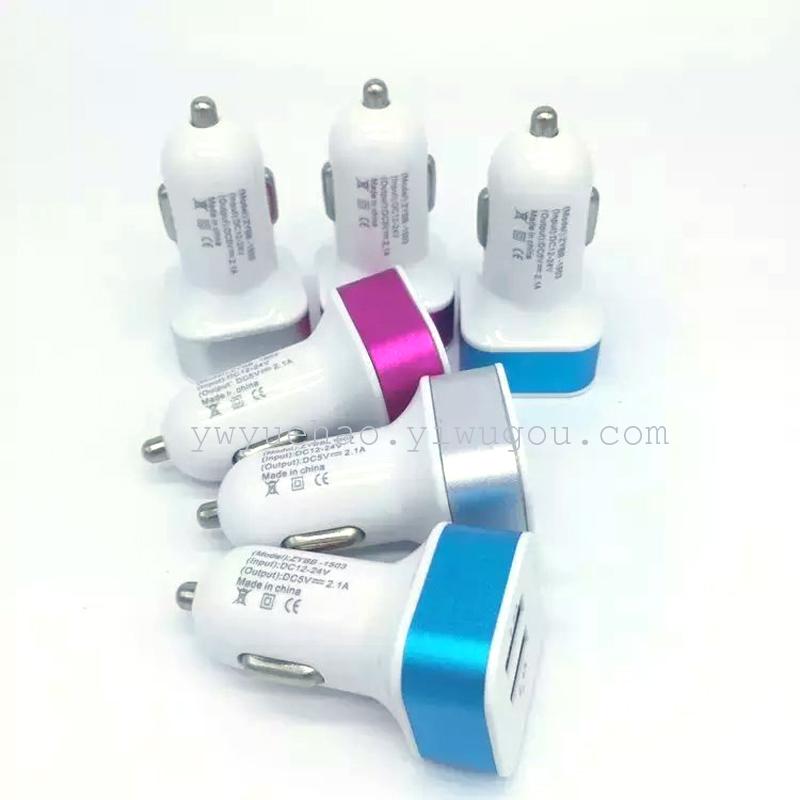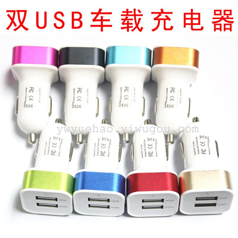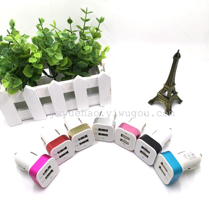 彩色铝合金方头车载充电器 双USB车载充电器 车载手机充电器
