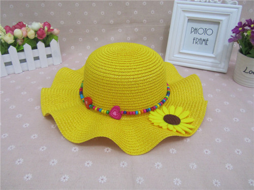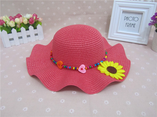 头围52cm 单色花波浪遮阳帽草帽