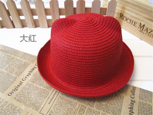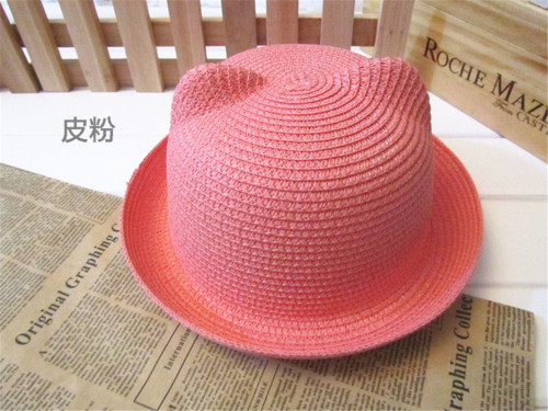 头围51-52cm 多色韩版可爱猫耳朵遮阳草帽亲子帽
