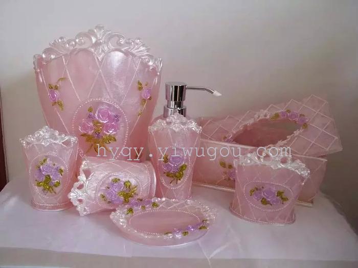 产品名称:树脂洗漱用品欧式卫浴七件套(皇宫玫瑰 粉)