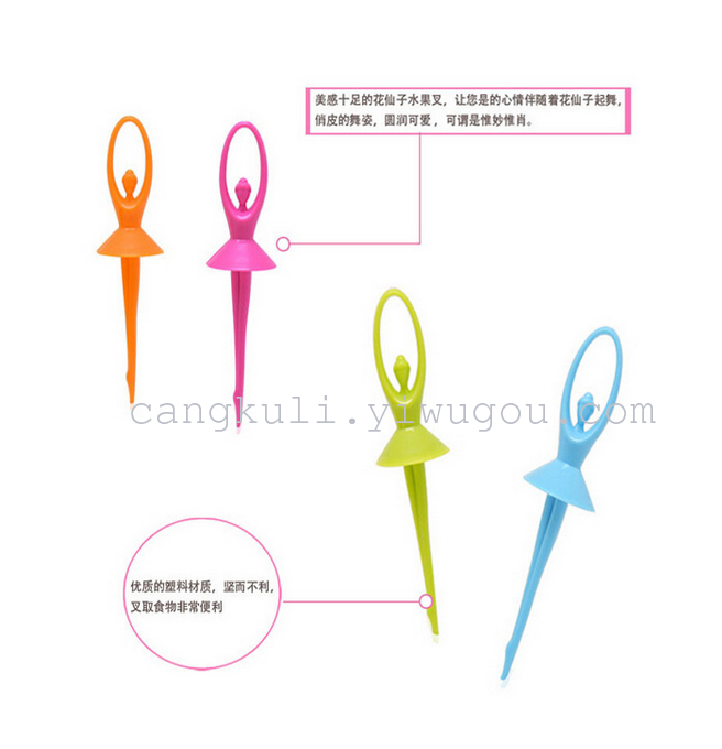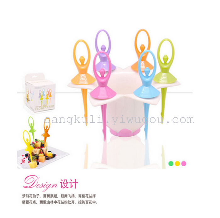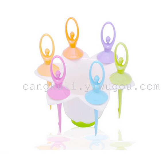 厨房创意芭蕾舞 花仙子水果叉 花朵底座 塑料牙签 食品级