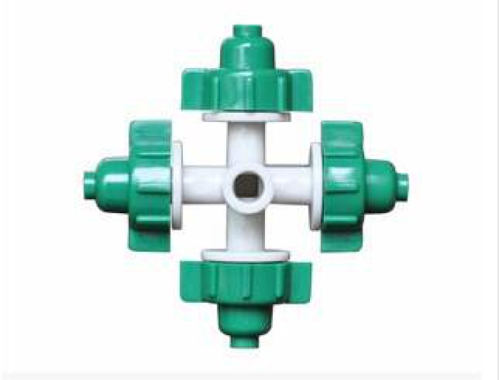 3.此款十字雾化喷头常规使用在绿色大棚里的吊喷,对于要求雾化效果要好的植物洒水是最理想的选择.