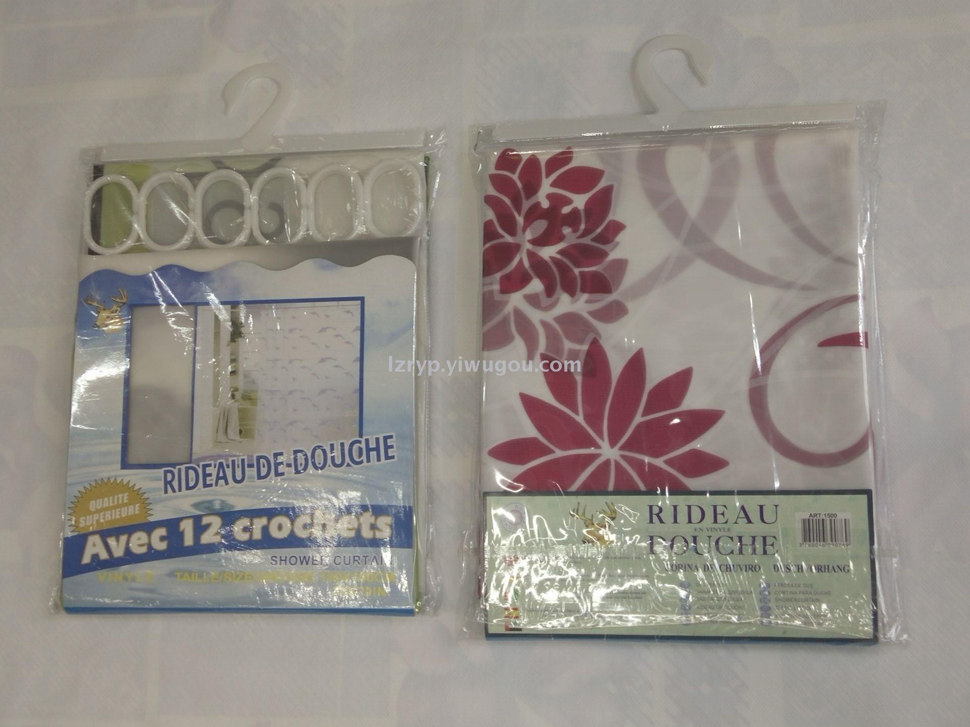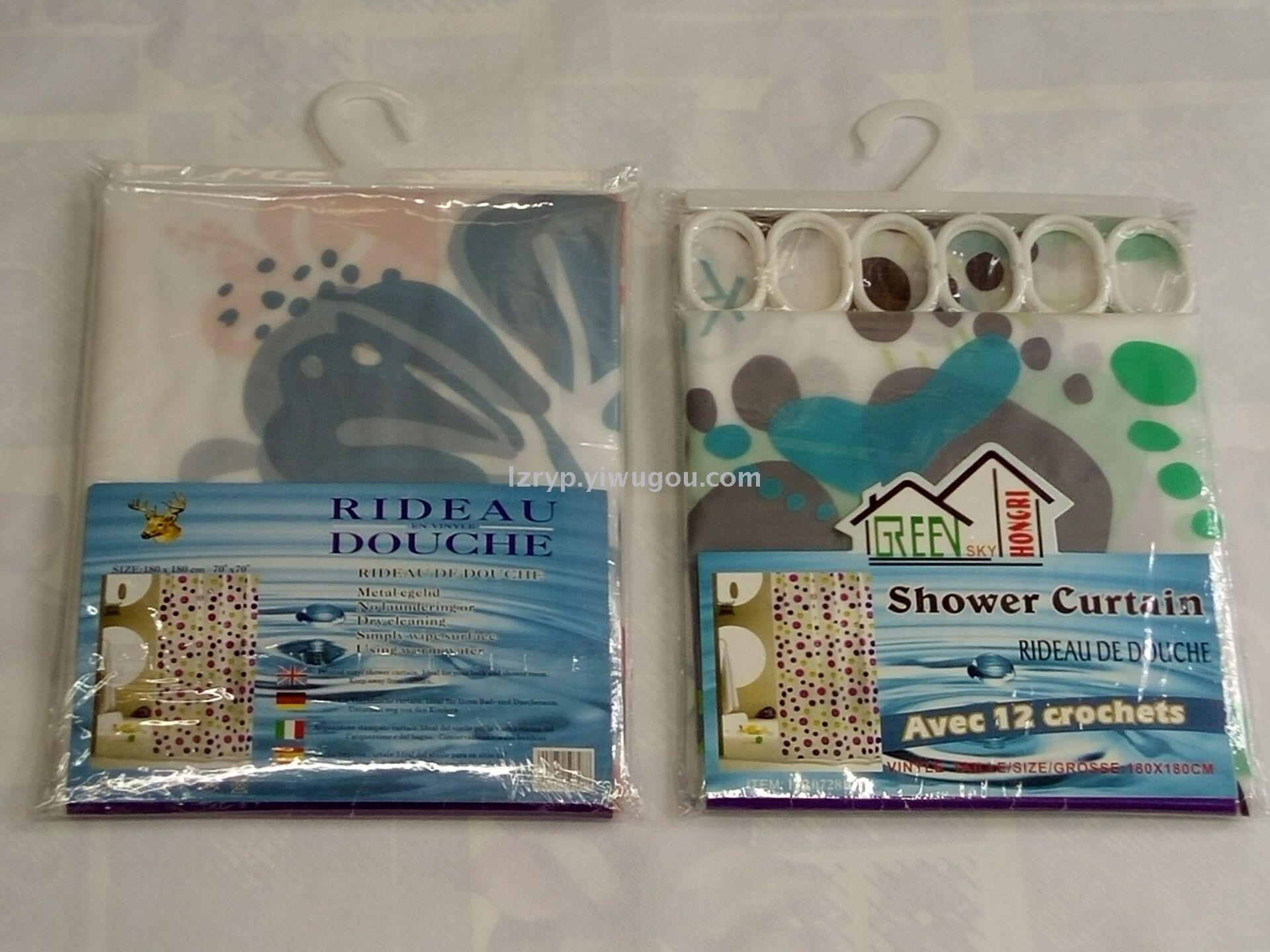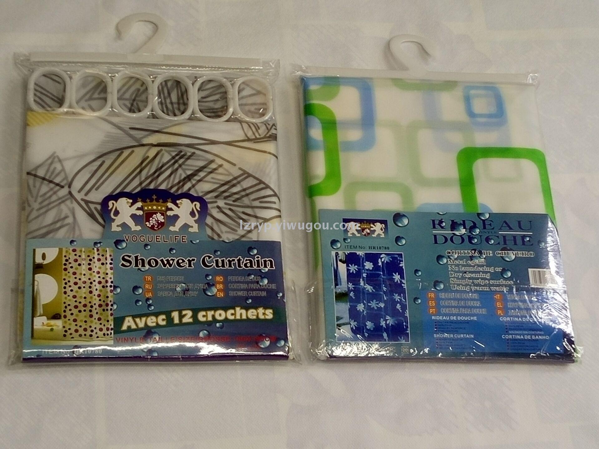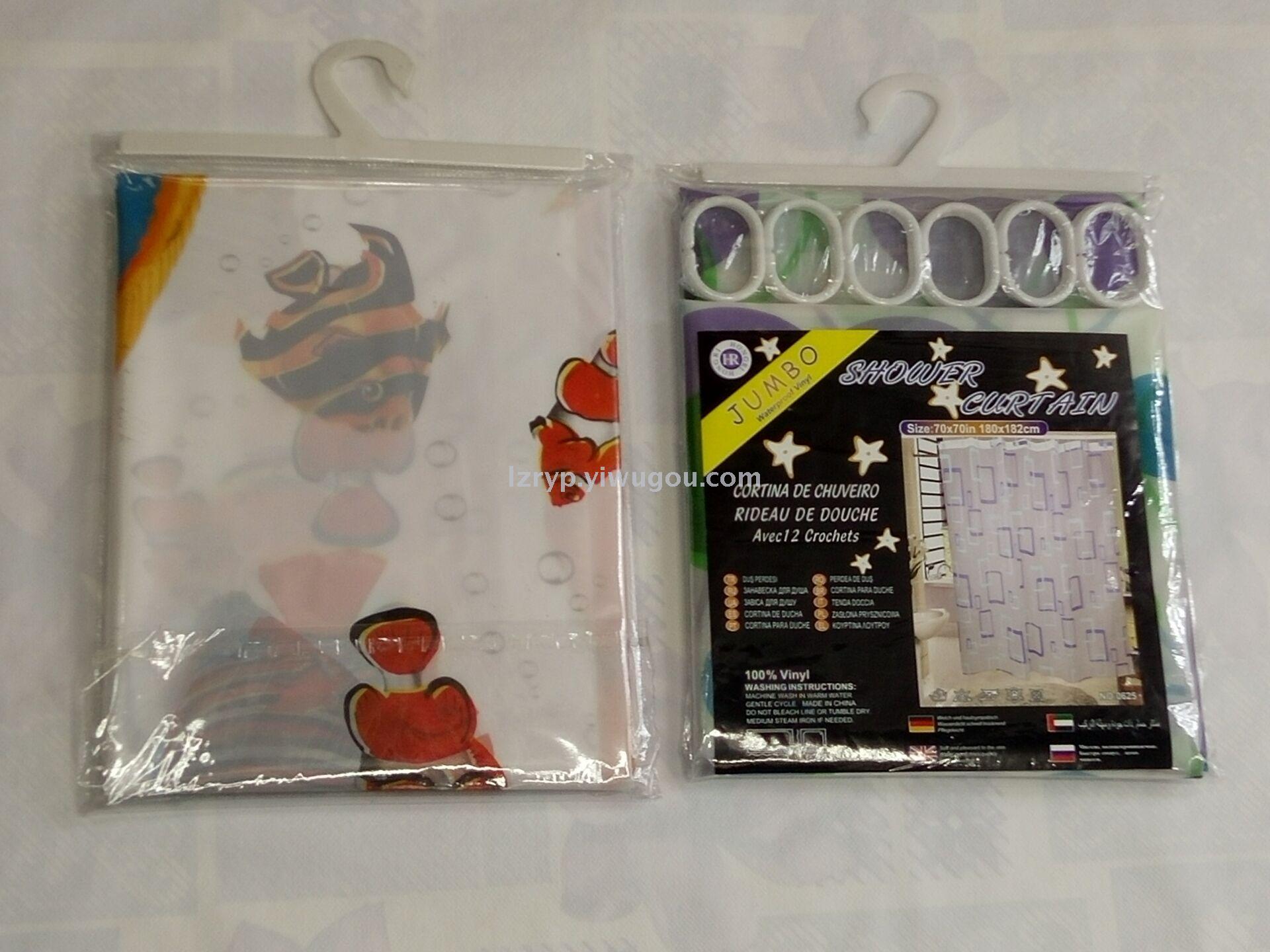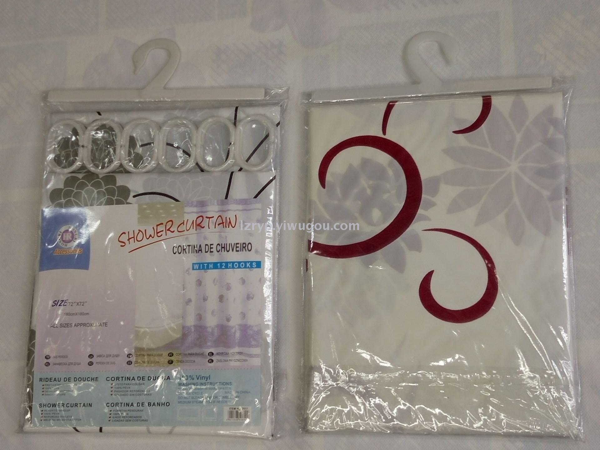 塑料浴帘180X180CM 12个机眼 12个塑料挂勾 浴室挡水用、装饰用