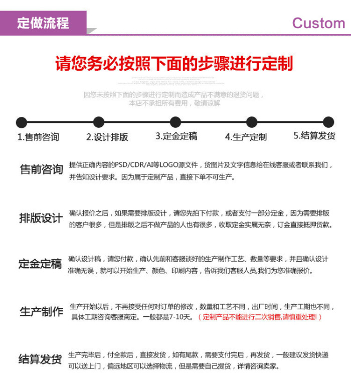 【定做说明】定制图案或尺寸,数量3万起订,模版费另付