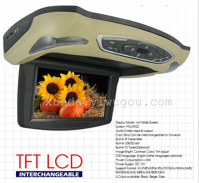 ·支持PAL/NTSC/SECAM全制式电视 ·本机自带功能: DVD/MP5/FM/功放喇叭 ·可选黑色、灰色、米黄色,适合不同车内饰 |