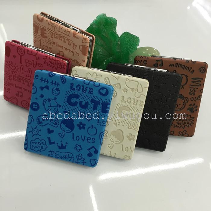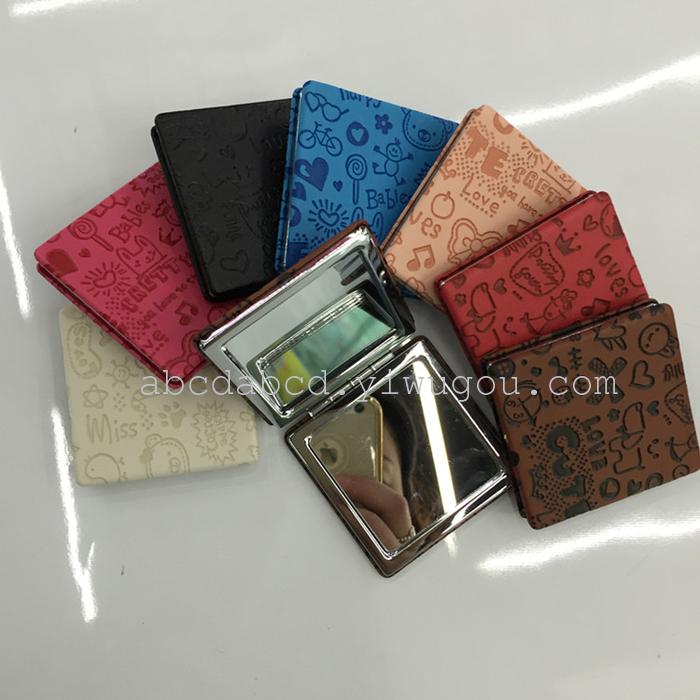 高档PU皮化妆镜子,可个性定制广告礼品镜,印logo