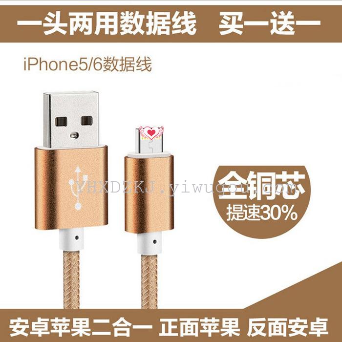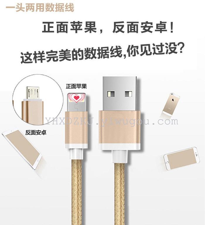 厂家新品首发,正面安卓,反面苹果,一个头,既可以充苹果,又可以给安卓手机充电,一头两用,真正的二合一,可传输数据!