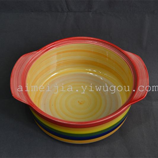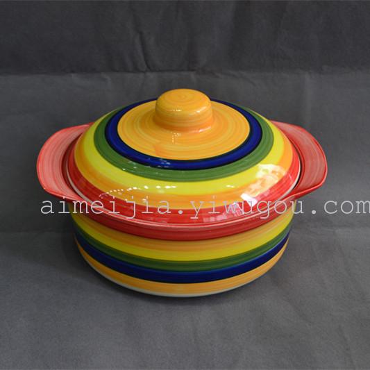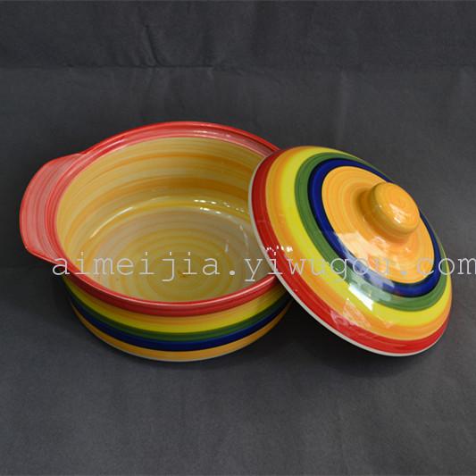 8寸手绘沙锅除盖高8CM 口直径21CM 10个装/箱 体积0.035CBM 颜色混装