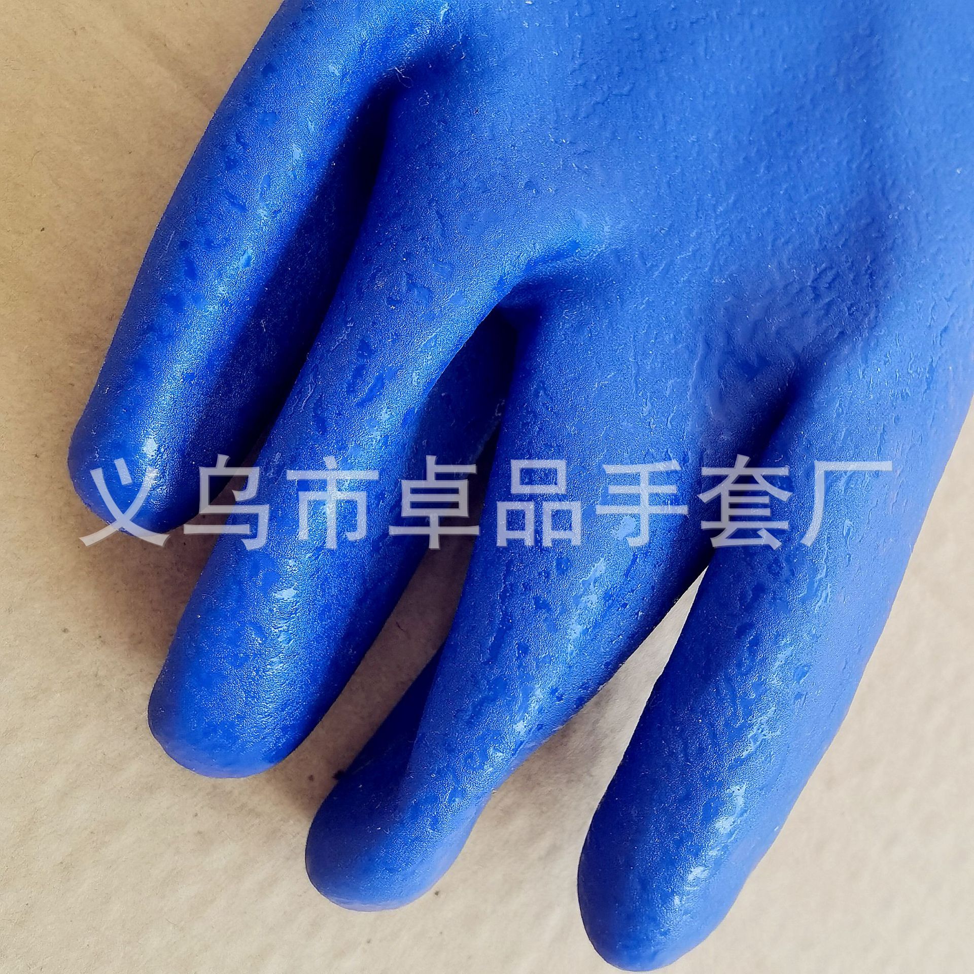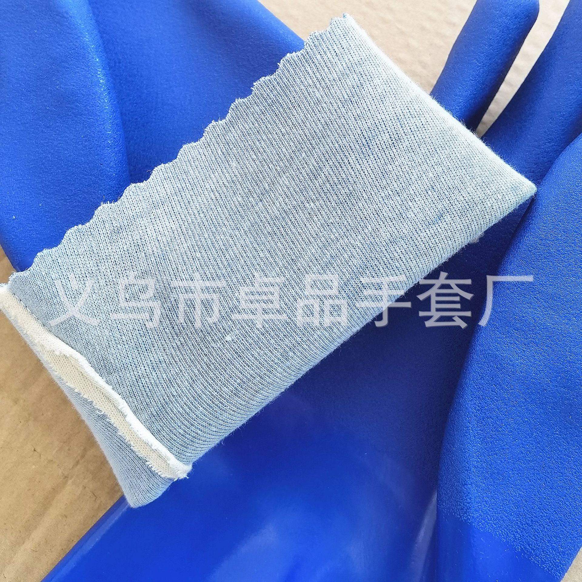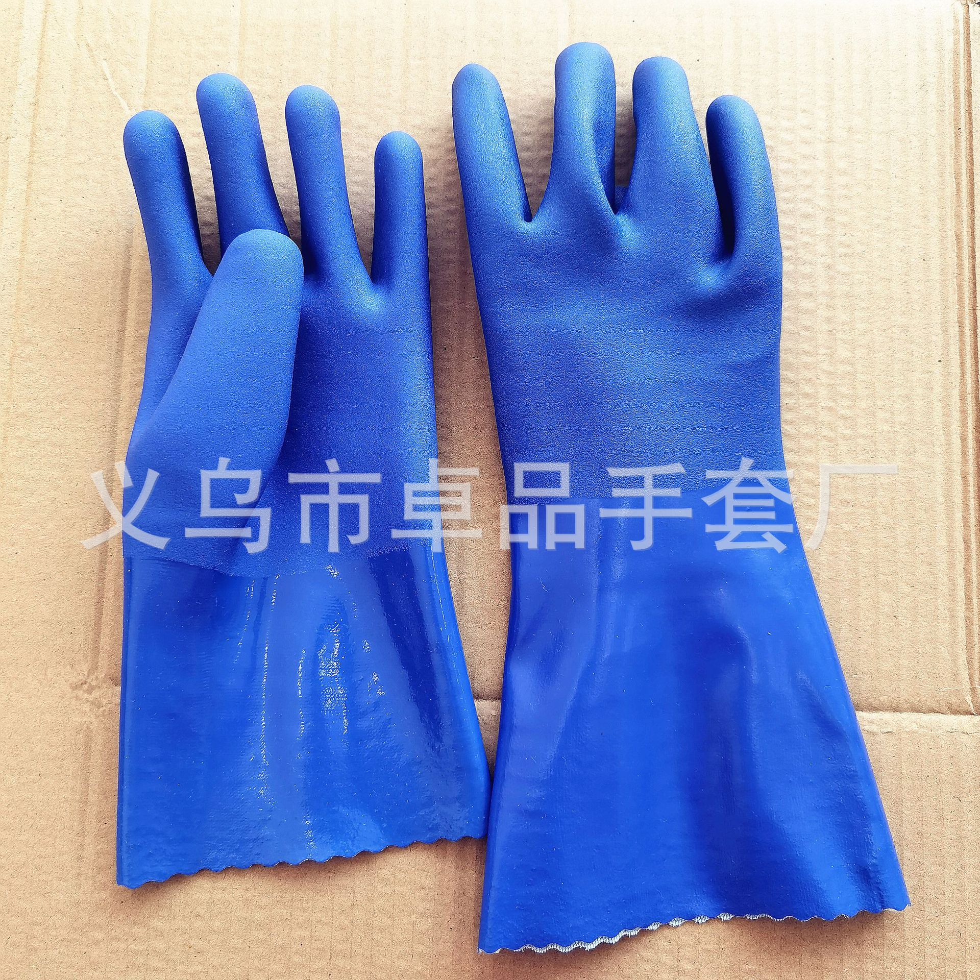【品名】:蓝色PVC浸胶手套