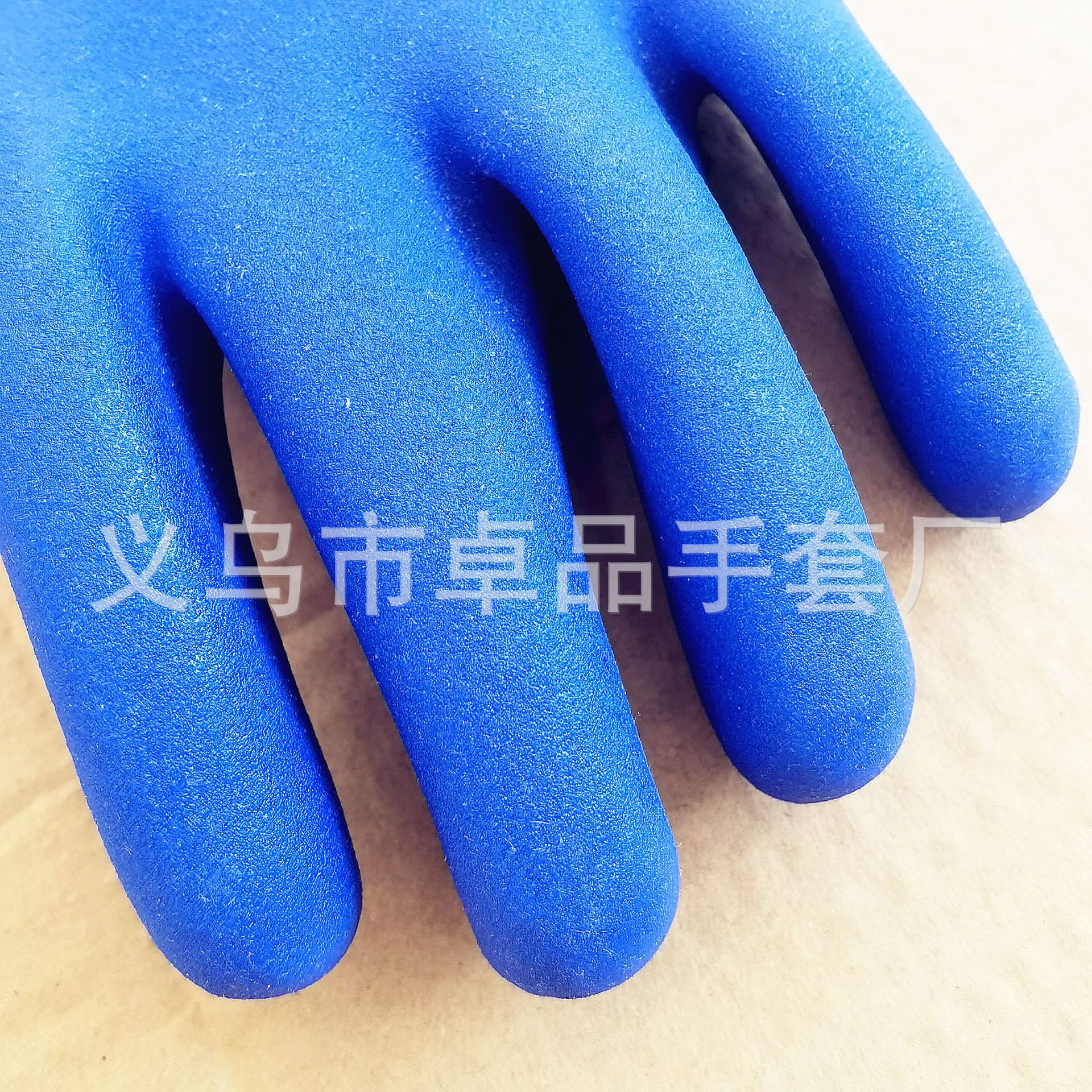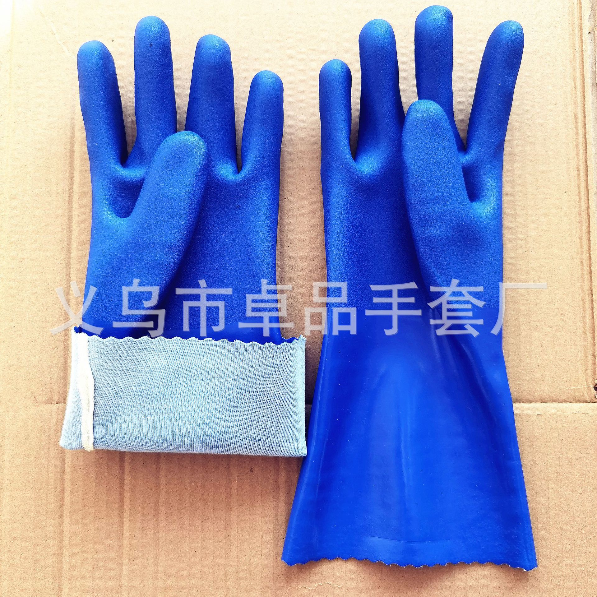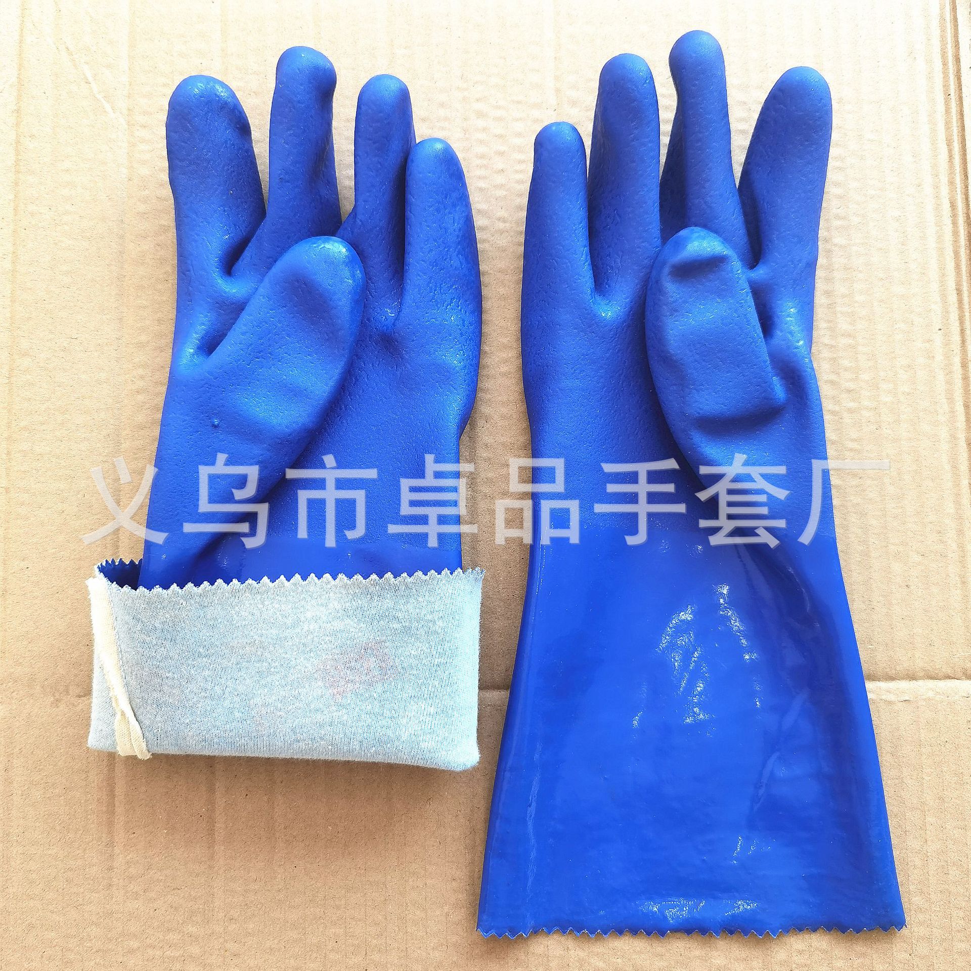 【品名】:蓝色PVC浸胶手套