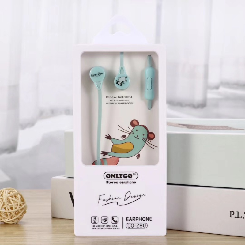 创意入耳式耳机 老鼠卡通图案带唛语音通话面条线耳塞 外贸礼品
