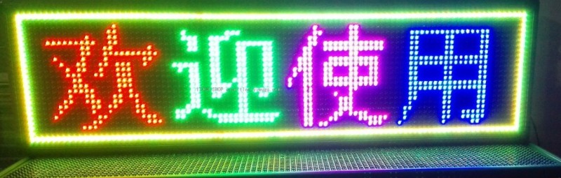 P10全色半户外显示屏,规格 100cmx40cm,屏面96cmx32cm,随机配光盘带调试软件,自带电源插头线和USB接口和WiFi通讯,显示内容随时可调换,配有挂钩,悬挂很方便,电压交流110-240V,色彩绚丽,闪动方式多样,使用方便,厂家直销,价廉物美.