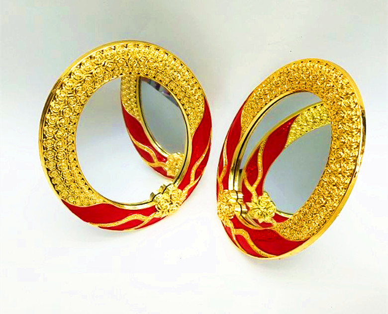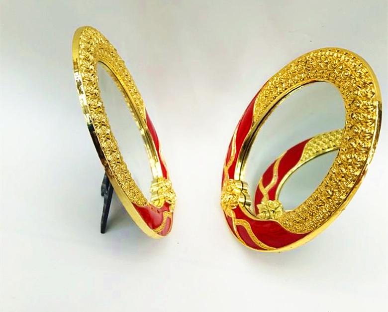 【产品名称】: 新款台式单面喜庆化妆镜 【产品型号】: 605 【产品尺寸】: 镜面12*16cm 整体17*22cm 【产品材质】: abs+玻璃 【产品工艺】: 电镀 【产品包装】:单盒 【外箱尺寸】: 66*38*26.6cm 【毛重净重】: 12kg/10.5kg 【装箱数量】:60个/箱 【中盒数量】:12中盒 克重 173g