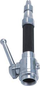 直流水枪喷射的水流为柱状,射程远、流量大、冲击力强,用于扑救一般固体物质火灾,以及灭火时的辅助冷却等。一般可分为普通直流水枪降开关直流水枪。开关直流水枪是增加球阀开关等部件组成可以通过开关控制水流。The water jet of dc nozzle is columnar, long range, large flow, strong impact force, it is used to save general solid material fire, as well as auxiliary cooling during fire fighting. Generally can be divided into ordinary dc water gun drop switch dc water gun. Switch dc nozzle is added ball valve switch and other components can be controlled by the switch flow