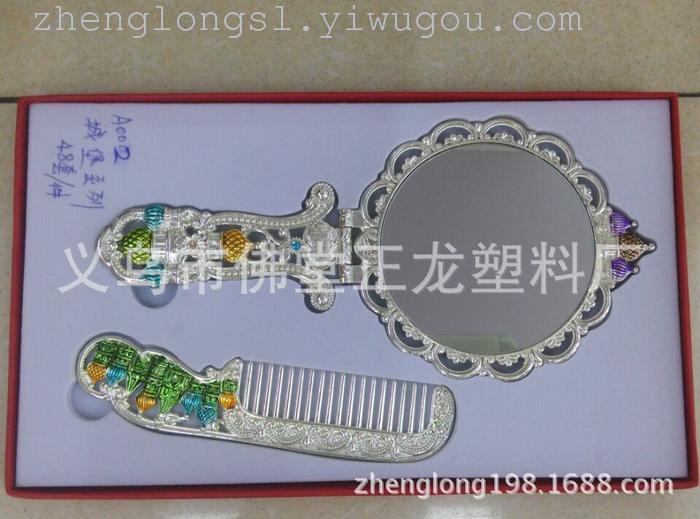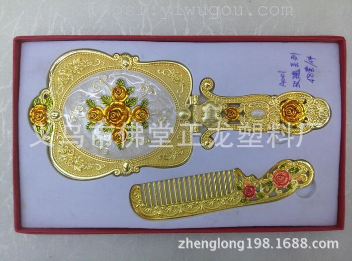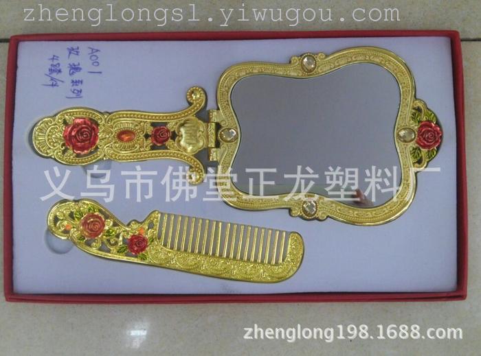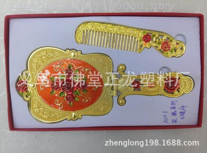 【产品名称】: 热销锌合金精品包装高档镜梳套 【产品型号】: A001玫瑰系列 【产品尺寸】: 盒子26*16/梳子15*3.5cm/镜子22*8.8cm 【产品材质】: 环保锌合金 【产品工艺】: 欧式景泰蓝 【产品包装】: 单盒包装 【外箱尺寸】: 47*34*28cm 【毛重净重】: 19*20kg 【装箱数量】:48套/箱 【中盒数量】:12 克重 380g/一套
