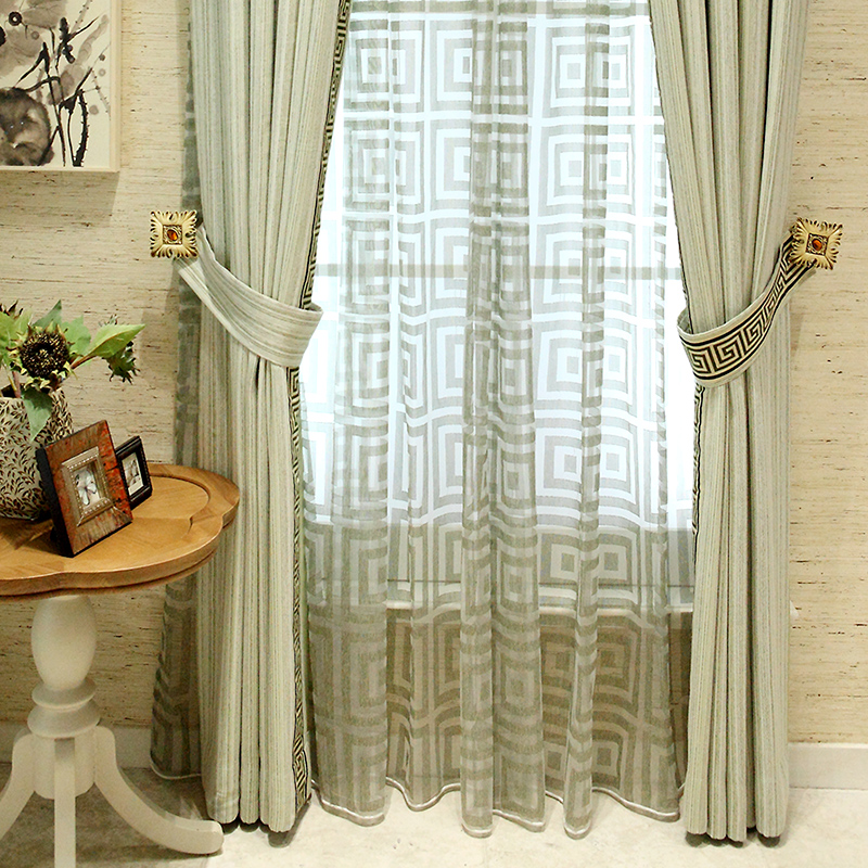 海纳定制现代简约中式落地窗帘飘窗大气复古