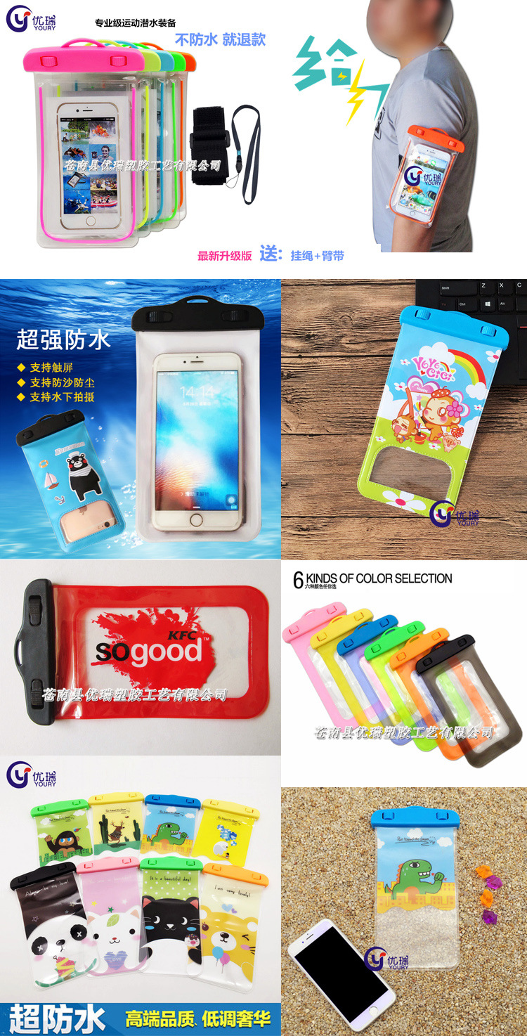 厂家直营: 现货通用手机防水袋、发光防水套、防水腰包等款式众多,欢迎选购!