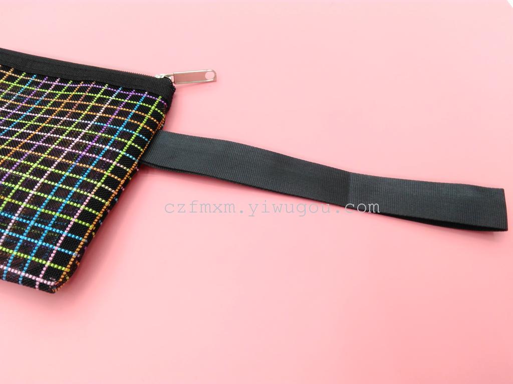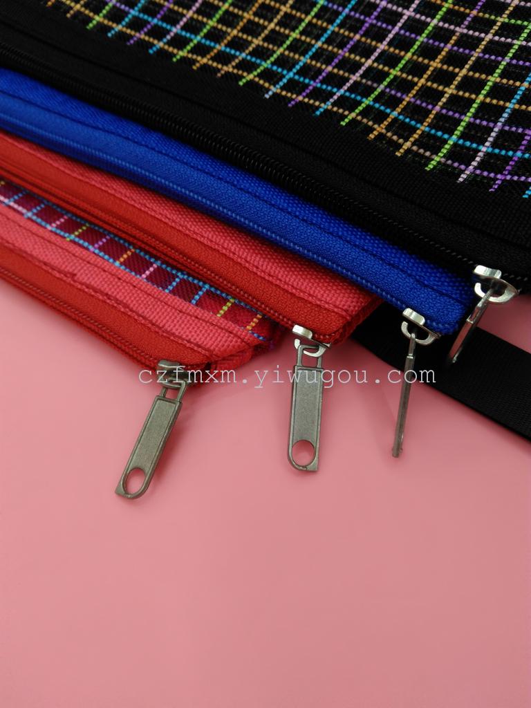 文件袋双色格子网格袋拉链袋 拉边袋文件袋