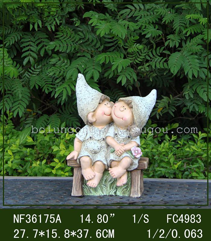 情侣娃娃树脂摆件产品,造型美观,适合园艺.家居摆设的产品.产品型号:BL36175;.尺寸:27.7*15.8*37.8CM;包装:单独泡沫包;装箱数:4PCS;体积:0.12