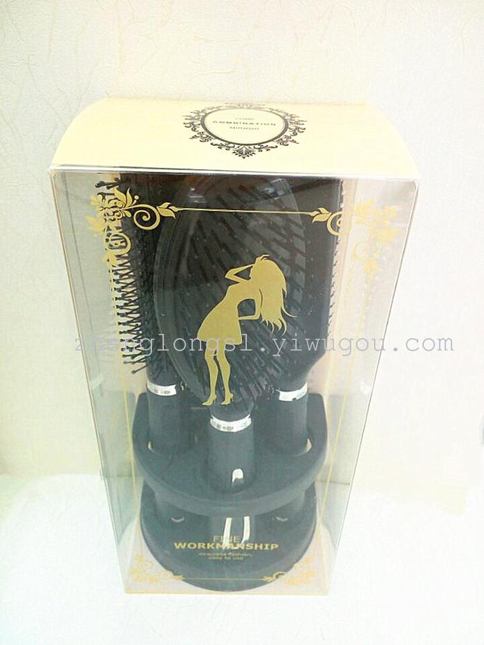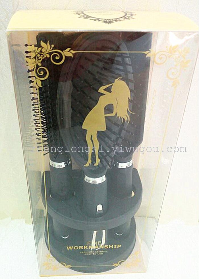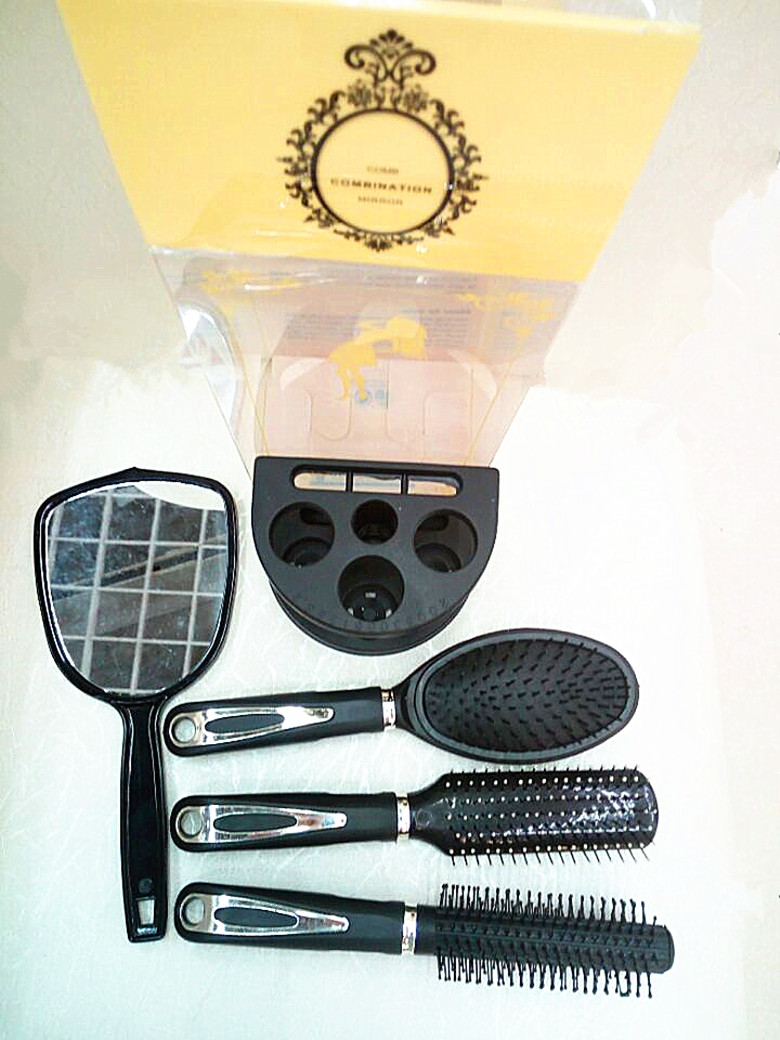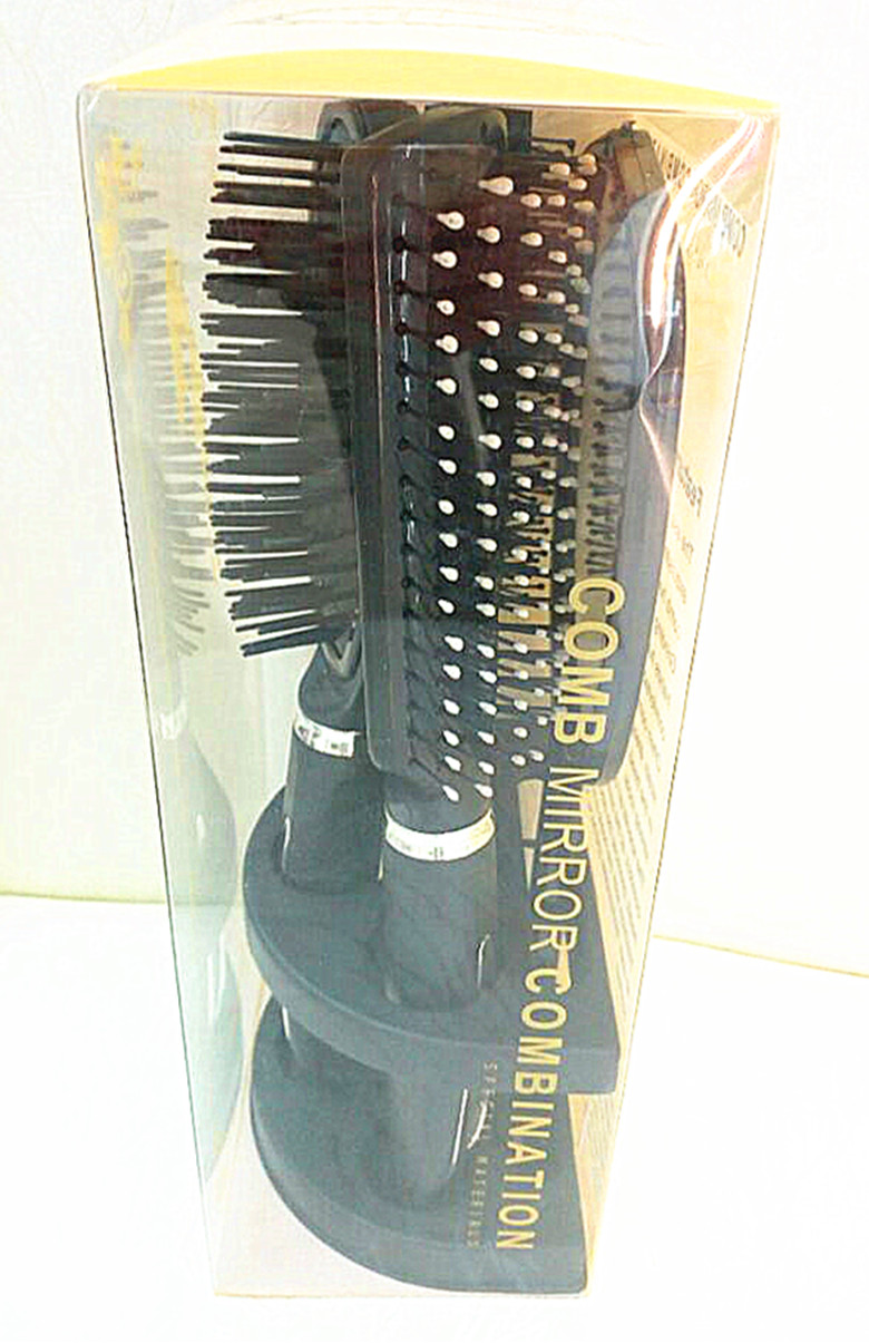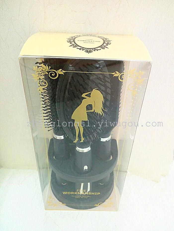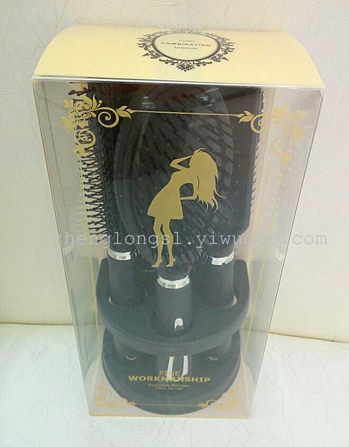【产品名称】: 新款精品包装四件套镜梳套 【产品型号】: PV9509DB-4 【产品尺寸】: 单个外盒 23*11*8CM梳子23*4CM,镜子22*10CM
