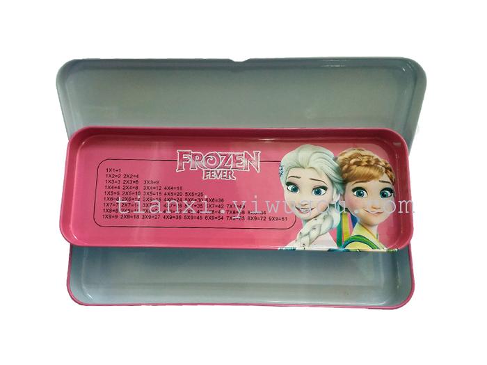 此款文具盒优质马口铁制作,牢固耐用,双层设计,大容量空间,分层收纳,且开合简易,取放方便。配以漂亮卡通图案,小朋友最爱。内层印有乘法口决表,让孩子记的更牢。