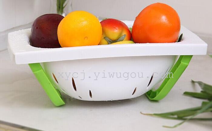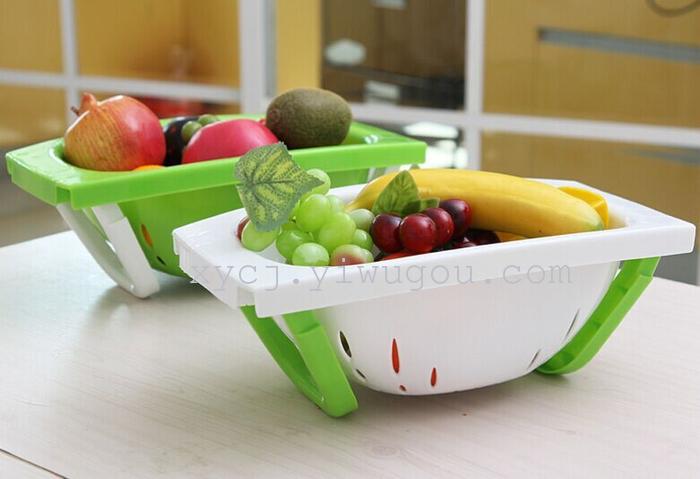 炫彩多功能折叠果蔬篮厨房洗菜沥水篮 糖果色塑料水果收纳篮