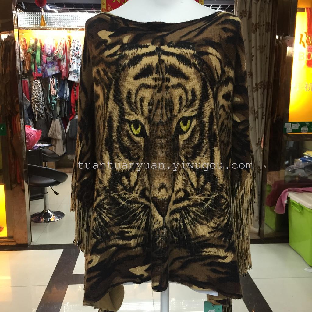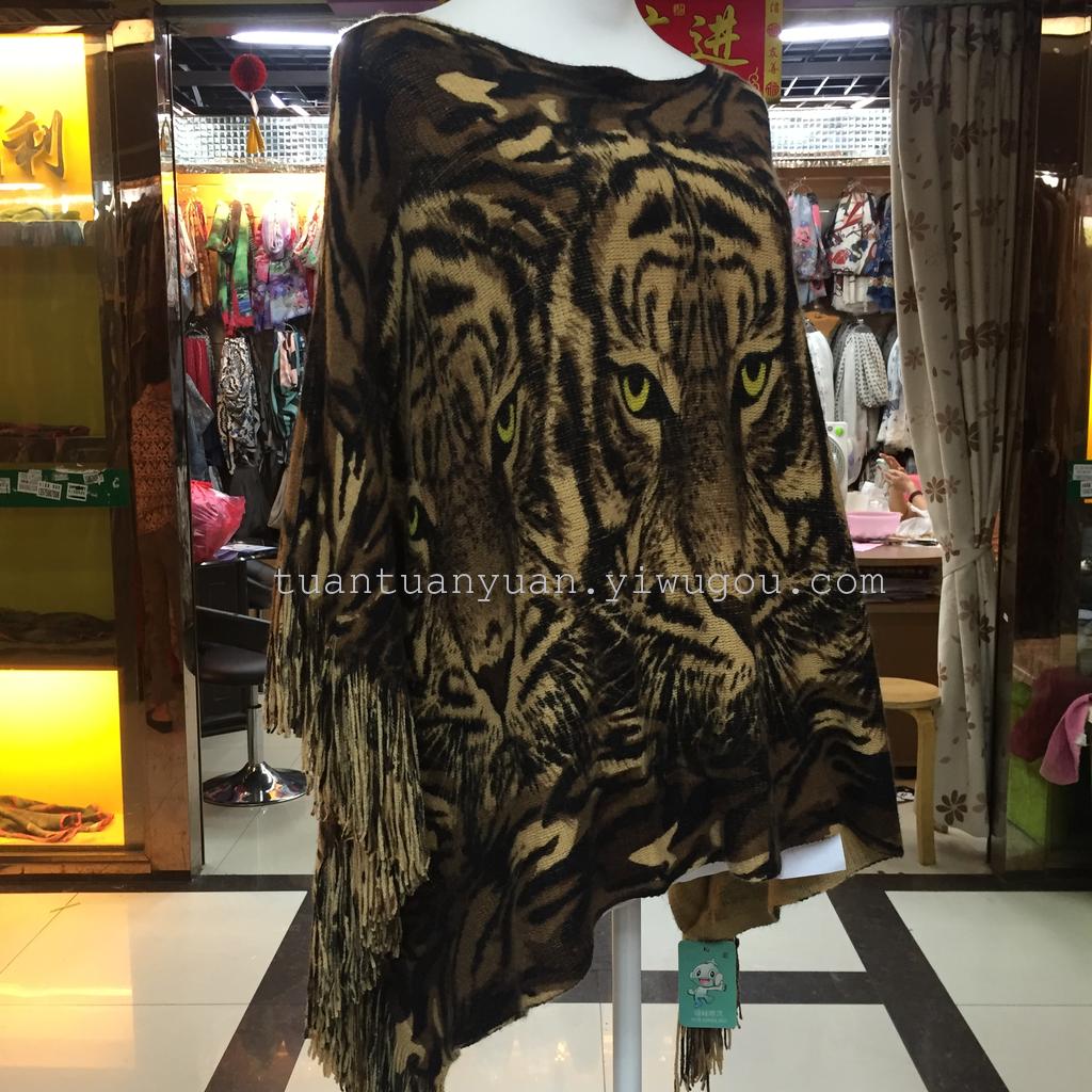 披肩欧美新款老虎头印花毛线披肩春秋冬季女士披肩 English | 投诉