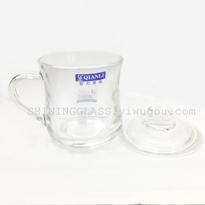 高质量透明玻璃杯 带盖茶杯办公茶饮杯 前力