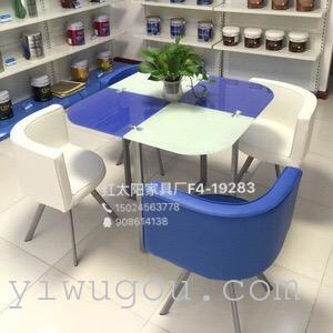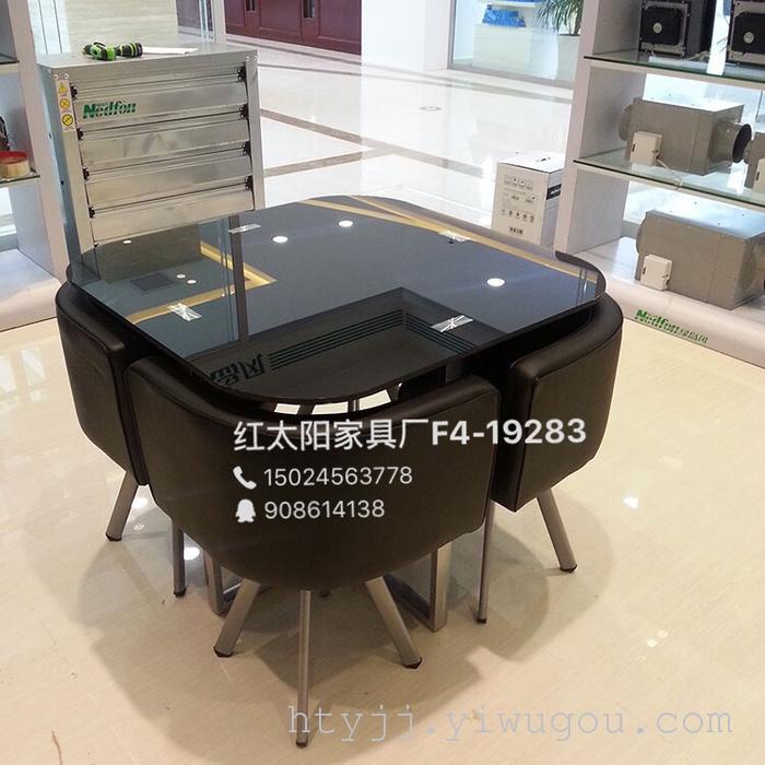 红太阳家具现代简约钢化玻璃餐桌椅休闲创意接待洽谈一桌四椅