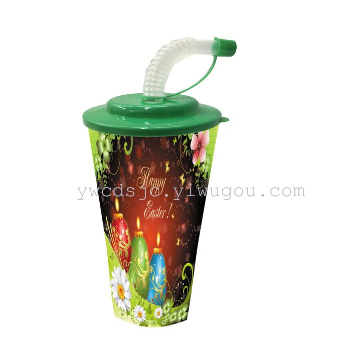 批发定制  促销宣传 吸管杯 可爱卡通杯 复活节日用品杯