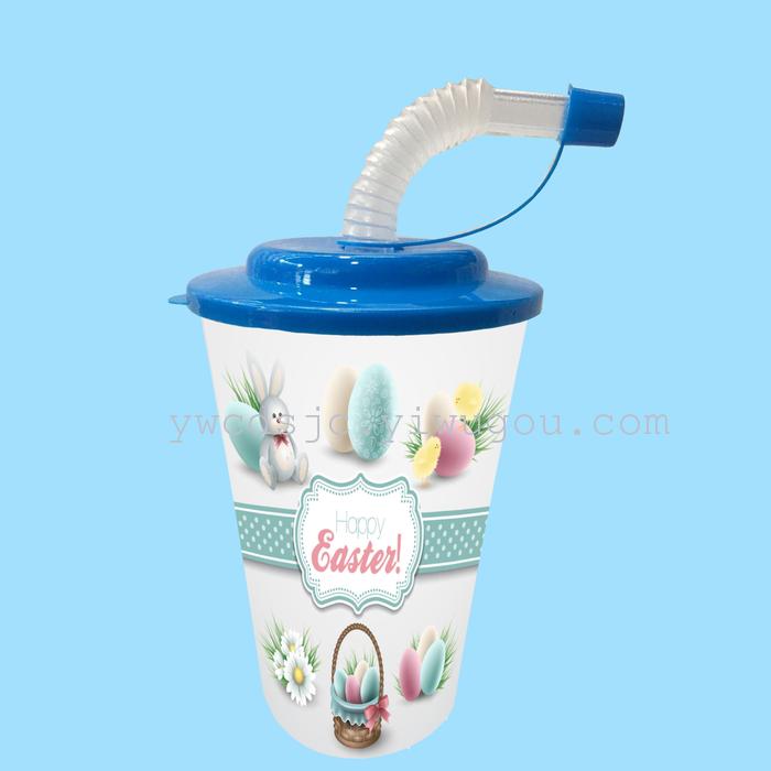批发定制 创意塑料杯 促销宣传杯 饮料杯 复活节可爱卡通杯