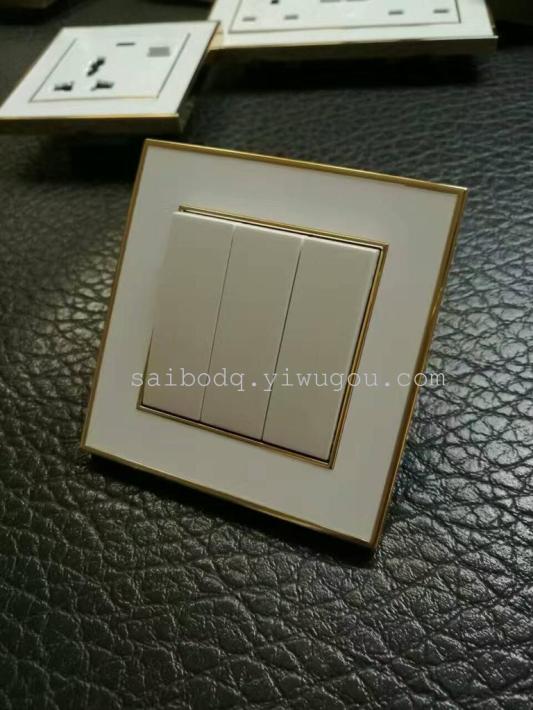 转换插插头USB赛西尔电器新款雅白金框系列三开单双控墙壁开关
