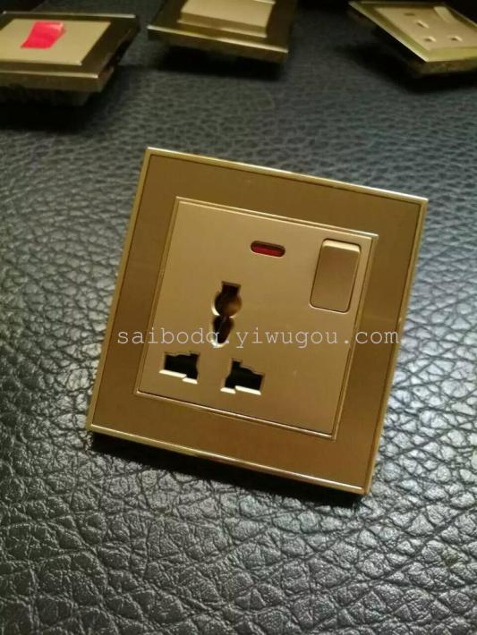 转换插插头USB赛西尔电器 香槟金一开三孔多功能墙壁开关