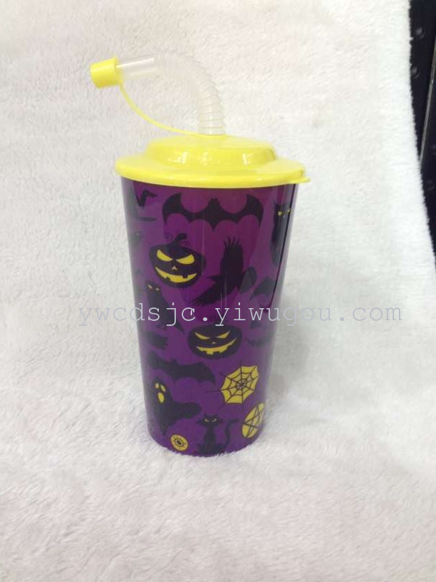 厂家直销优质pp材料 创意吸管杯 饮料杯 万圣节日用品杯 投诉