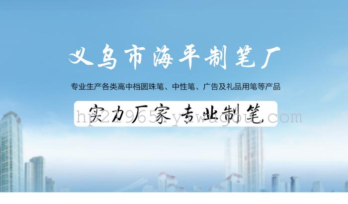 • 义乌海平制笔 主营各种广告圆珠笔,简易圆珠笔,旁跳圆珠笔,中性笔,各种圆珠笔芯,中性笔芯等。欢迎新老客户前来洽谈。